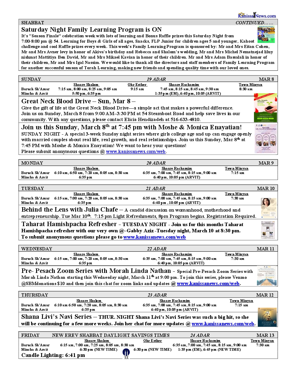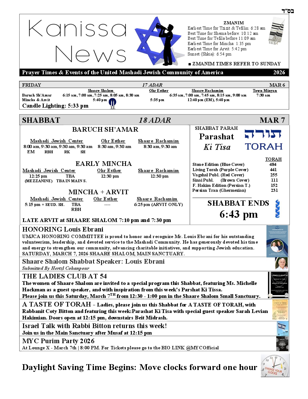 SHABBAT ENDS: 6:43 pm